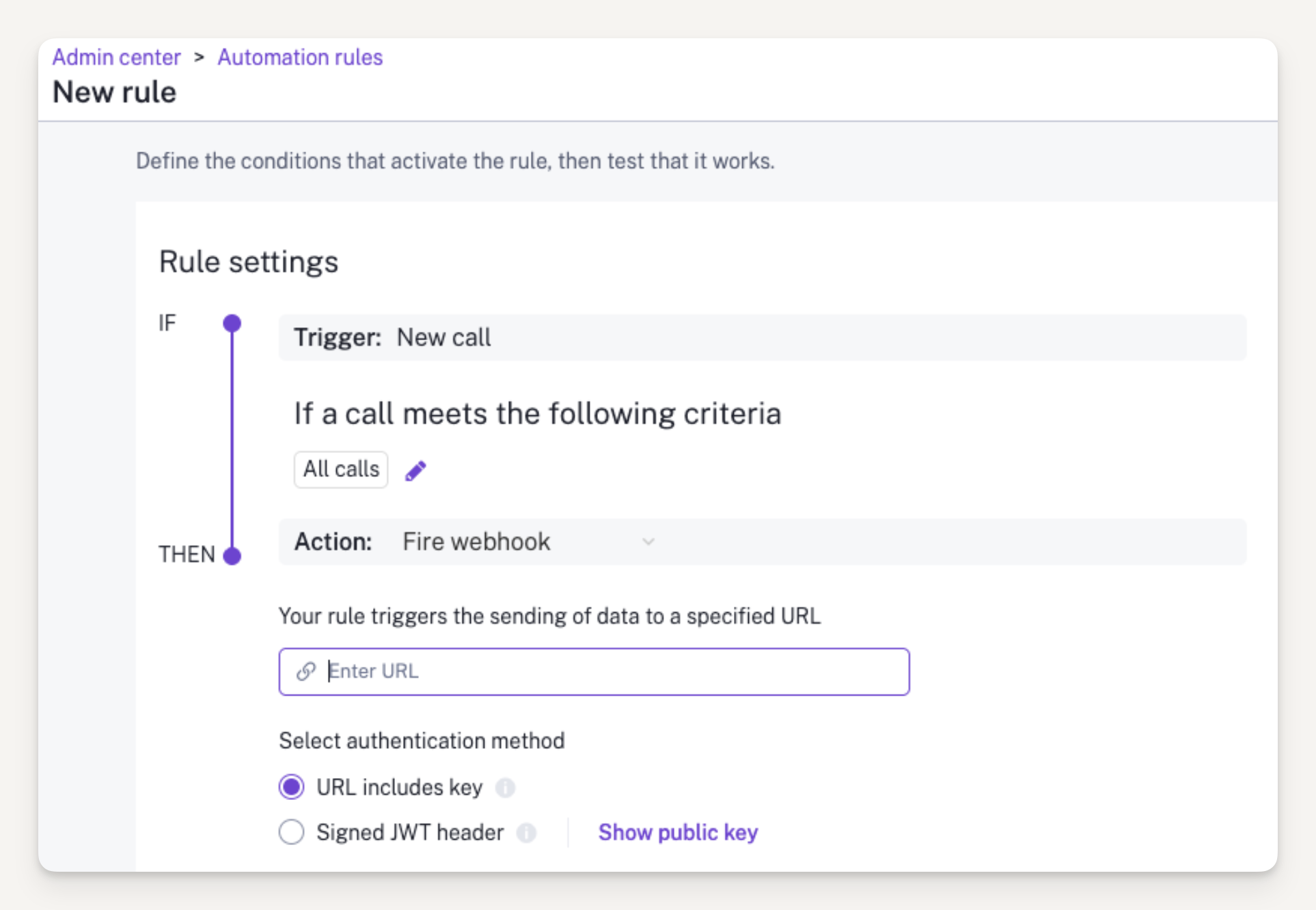 Log into your Gong account head to the Admin Center and under Automation Rules select Add rule