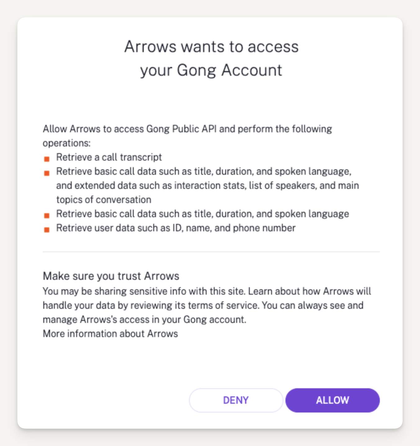 Click "Allow" on the Gong authorization screen