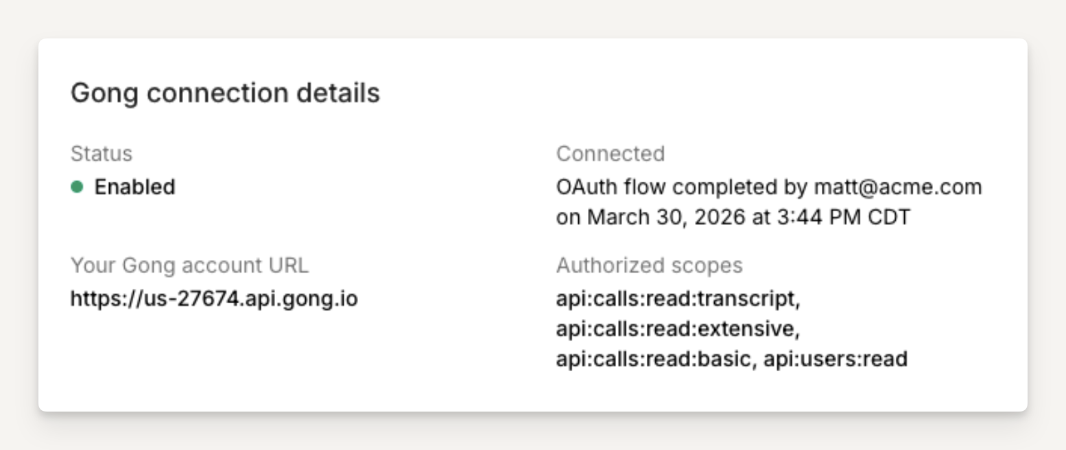 You should be redirected back to Arrows and see that your Gong connection is “Enabled”