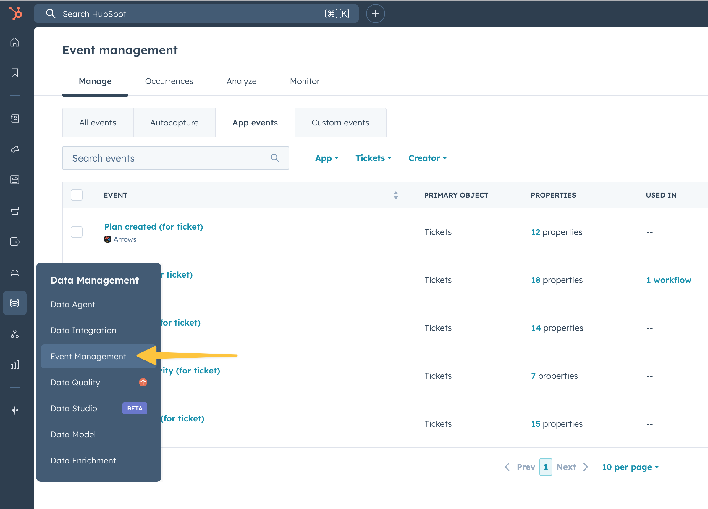 Viewing App Events in HubSpot