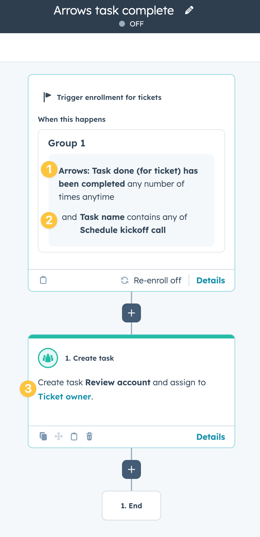 Onboarding automation: Create a workflow that triggers when a "Task done" event occurs for your onboarding plan. Automatically send an internal notification, update a pipeline stage, or create a follow-up task. You can even use this to trigger a custom email.