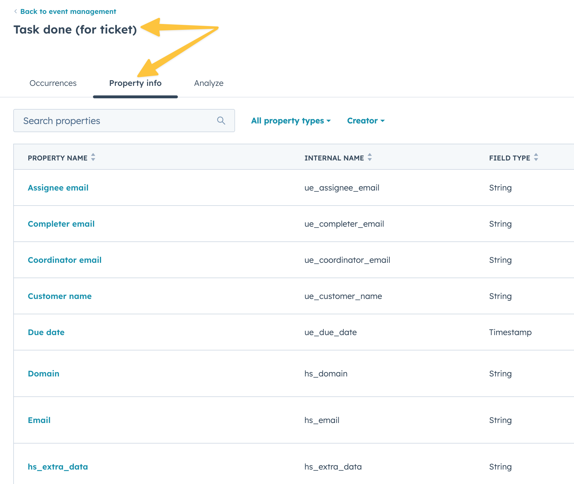 Every time something important happens in Arrows—like a plan being created, a task being completed, or a room being opened—that activity is recorded as an event in HubSpot with detailed property data.