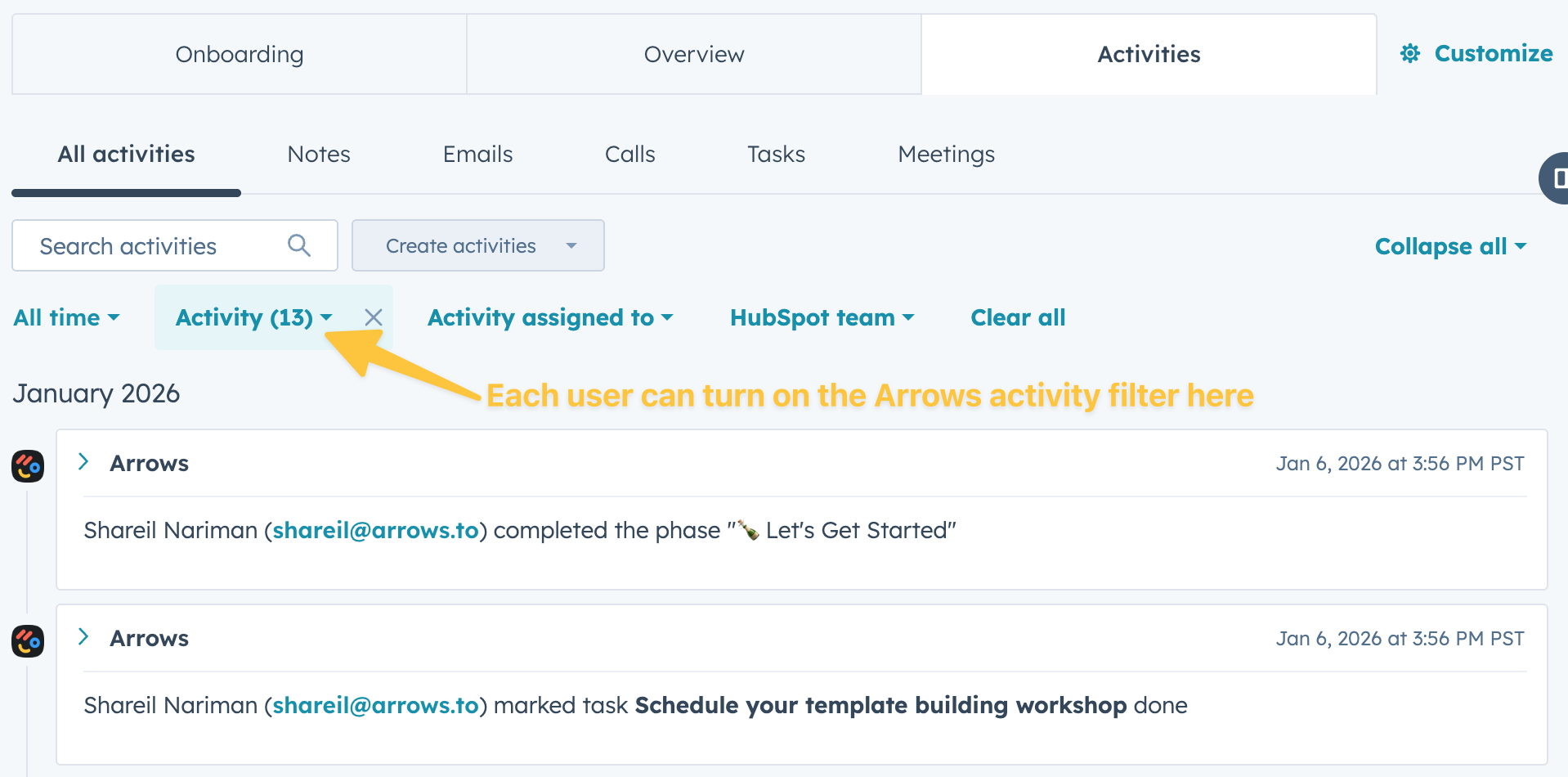 App Events unlock powerful workflows by bringing Arrows activity directly into HubSpot: