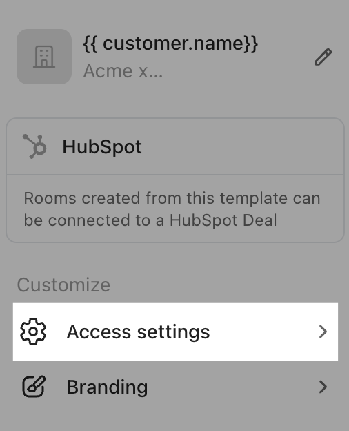 When editing a template, you’ll see the option for Access settings in your left sidebar menu