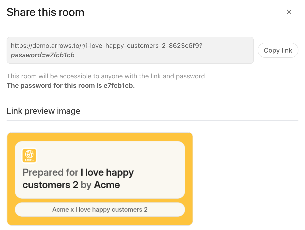 When you create a room from your starting template, the share panel will contain a shareable link with the password pre-saved.