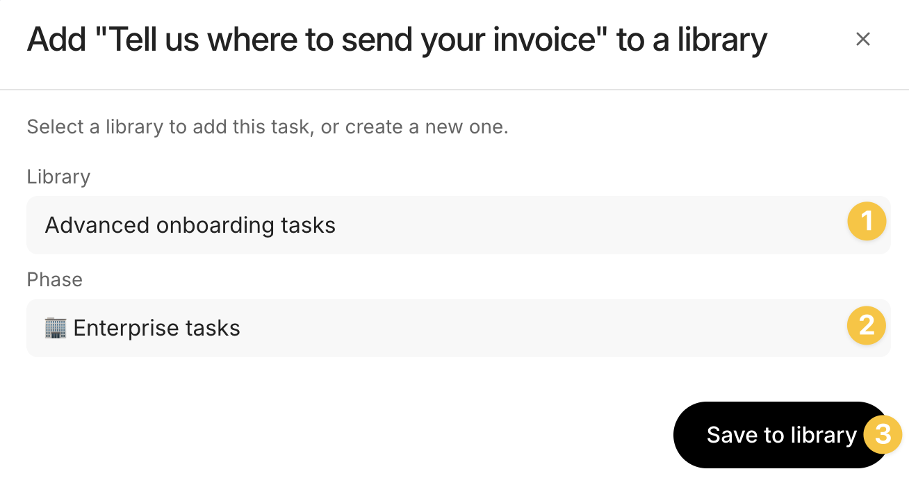In this example, the phase for Reports is now added to our Onboarding tasks library!