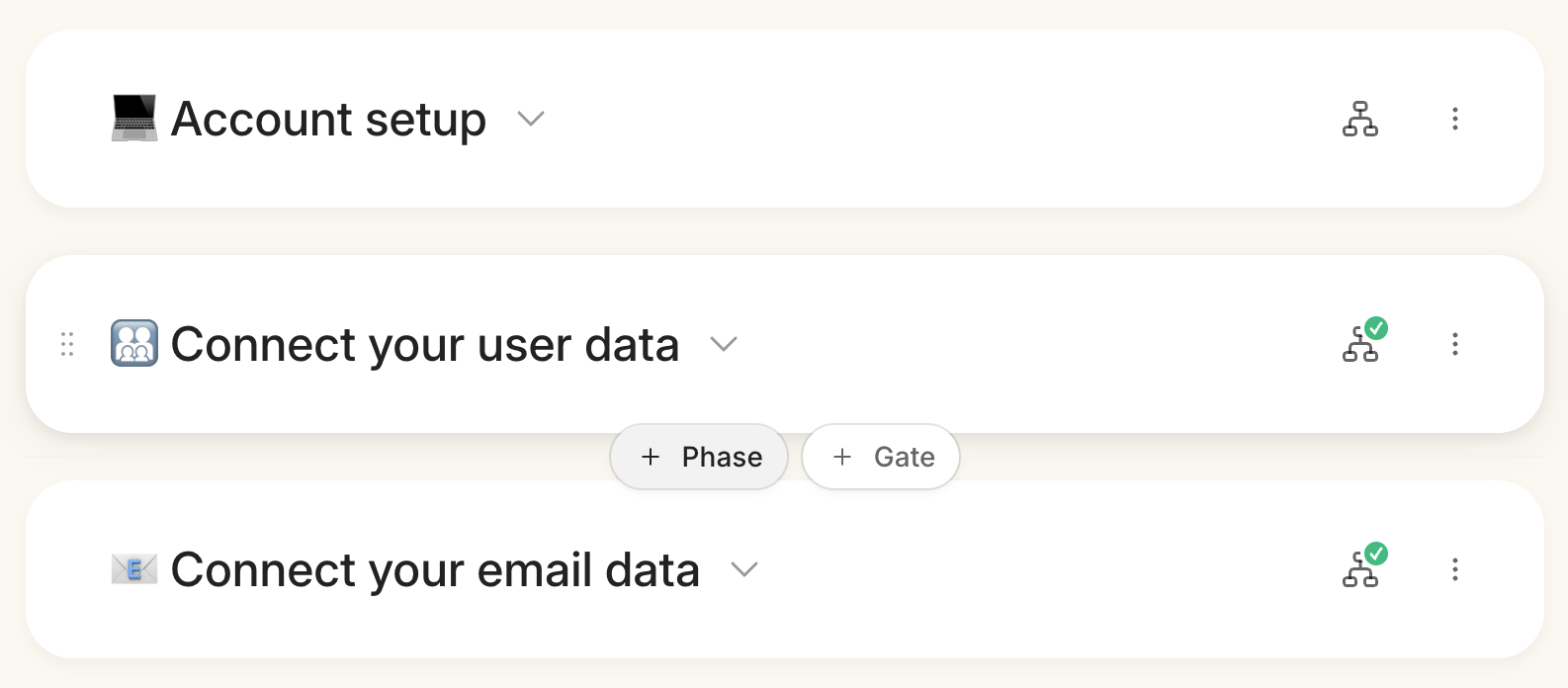 The next time you are editing a template or plan, you’ll see the option to + Phase when you hover your mouse between any two phases.