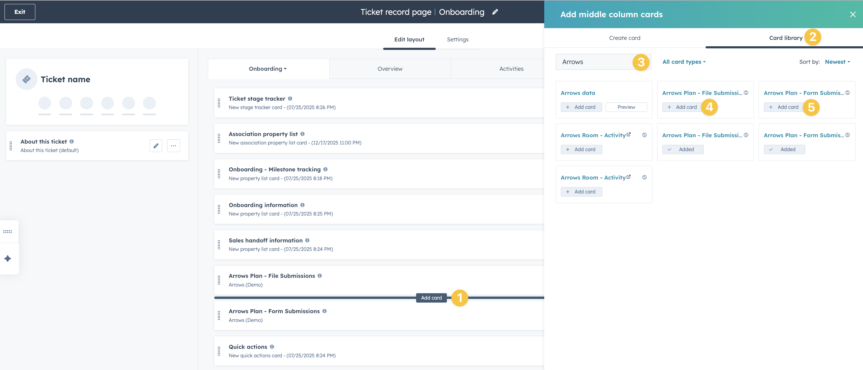 For that record, you can add the cards to the center activity view.