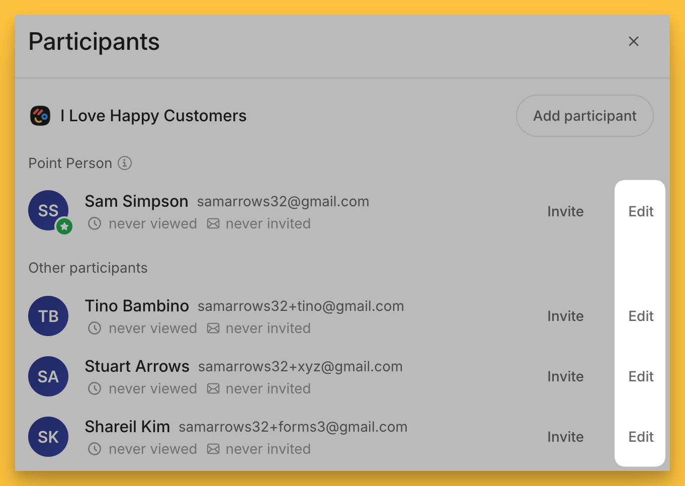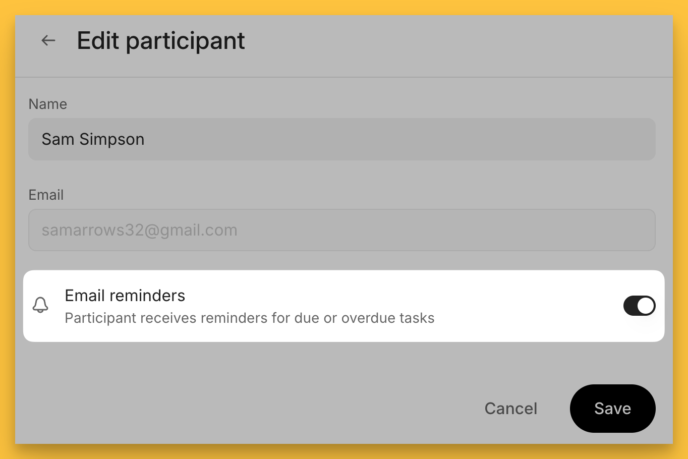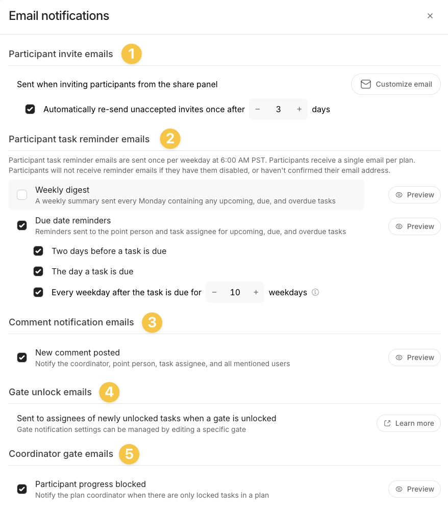 From any plan’s Share panel, you can select Edit and adjust the notification settings accordingly for that participant