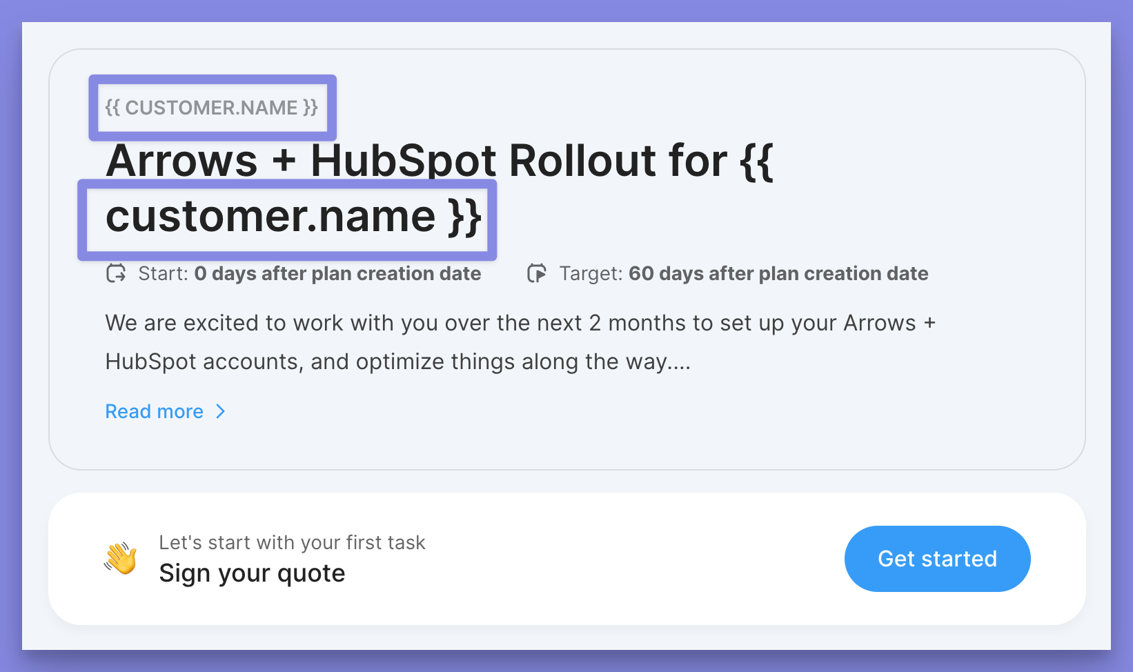 When you use this template to create a plan for a customer, the customer’s name is automatically populated into that attribute from HubSpot - once a plan is attached to a Deal or Ticket, we know the customer that it’s associated with!