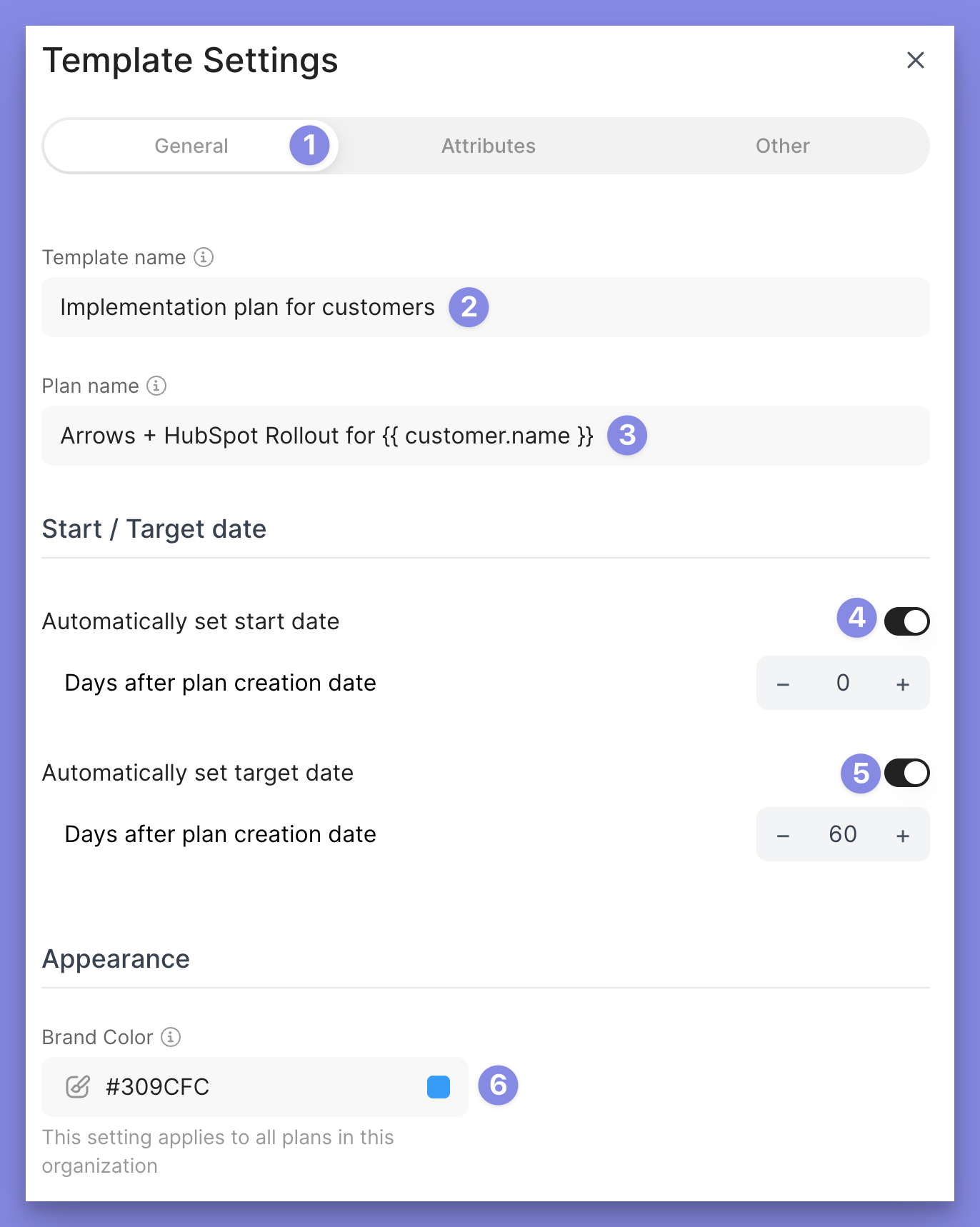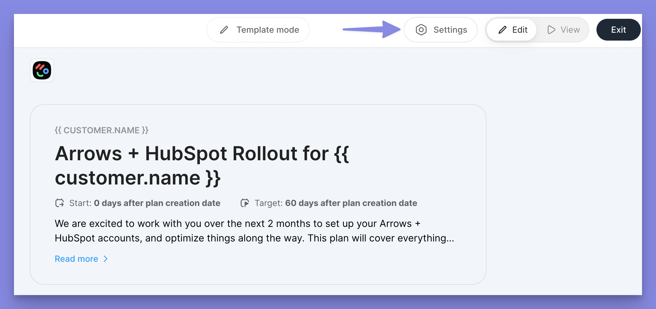 When you are creating or editing an Arrows Template, the Settings drawer is where you can access your general settings, your plan attributes, and other/advanced settings!