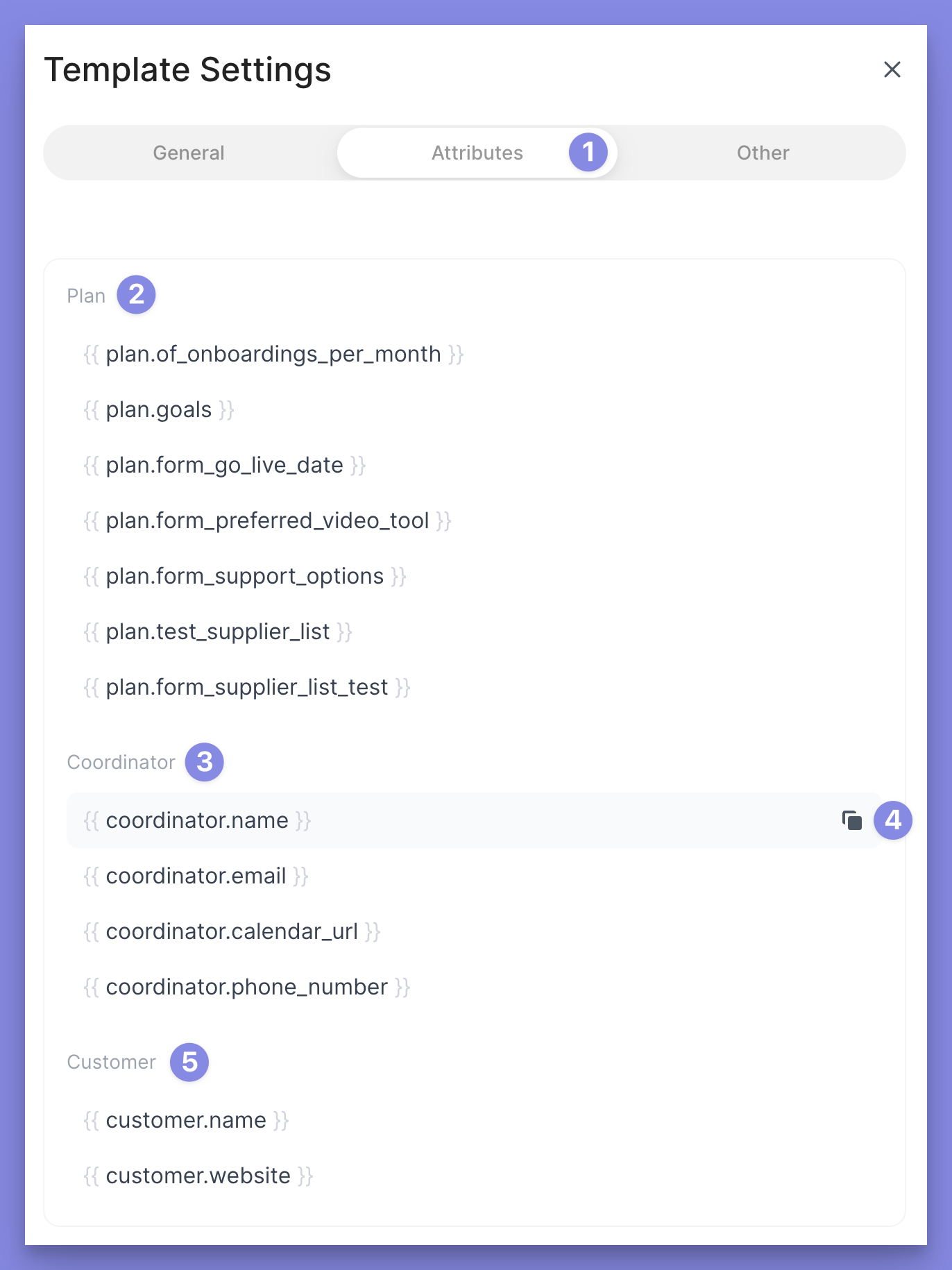 copy button - when you hover over any attribute, you’ll see an option to copy that snippet so you can paste it accordingly in your template