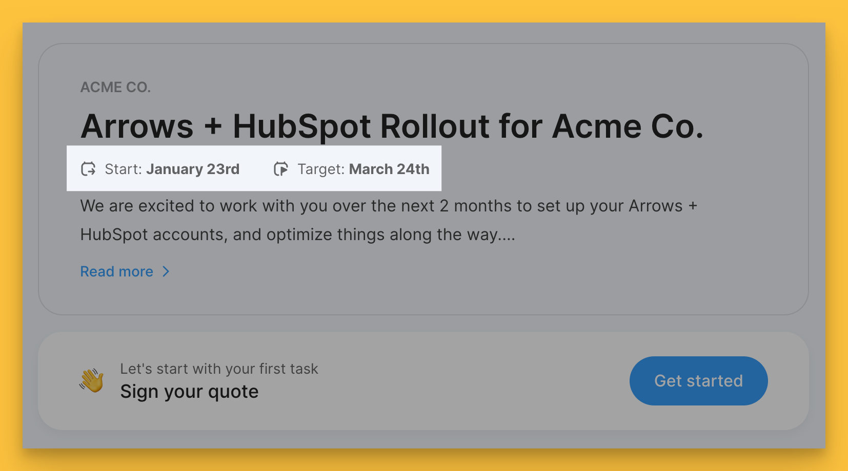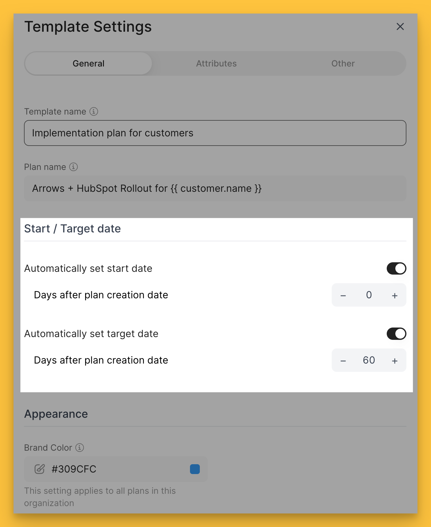 The ability to automatically set start and target dates on your templates helps you communicate timeline expectations for your customers.