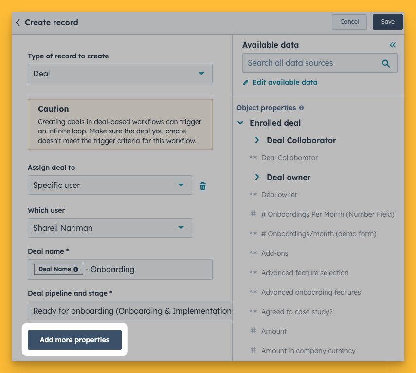 Let’s assume the source record is Deal A (the sales deal) and the new one that gets created is Deal B (the onboarding deal).