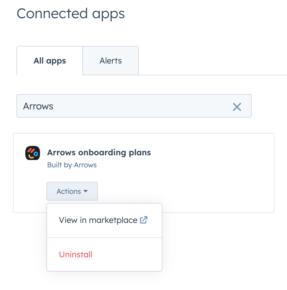 A guide to uninstall the Arrows application from your HubSpot account after you have authenticated the two