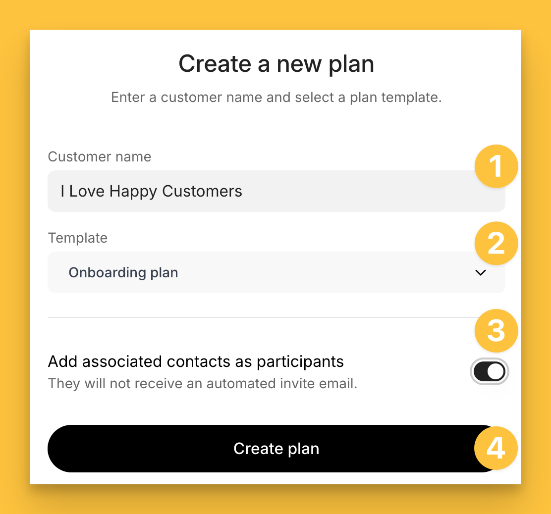 If contacts exist on that record, they can easily added to the onboarding plan as participants - don’t worry, they won’t be notified of anything.