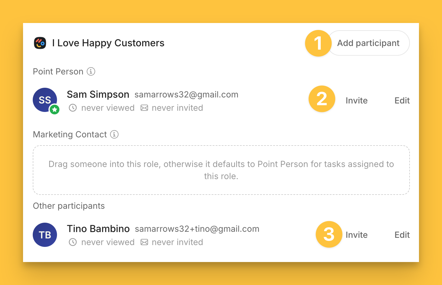 confirm which participants should receive the invite email